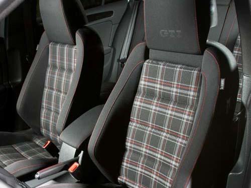 | Golf R的車主特別加價選配了筒型賽車座椅,展現(xiàn)出更強悍的運動風情,GTI原裝的格紋布座椅雖然沒那么戰(zhàn)斗,但也是GTI的經(jīng)典配備之一。 |