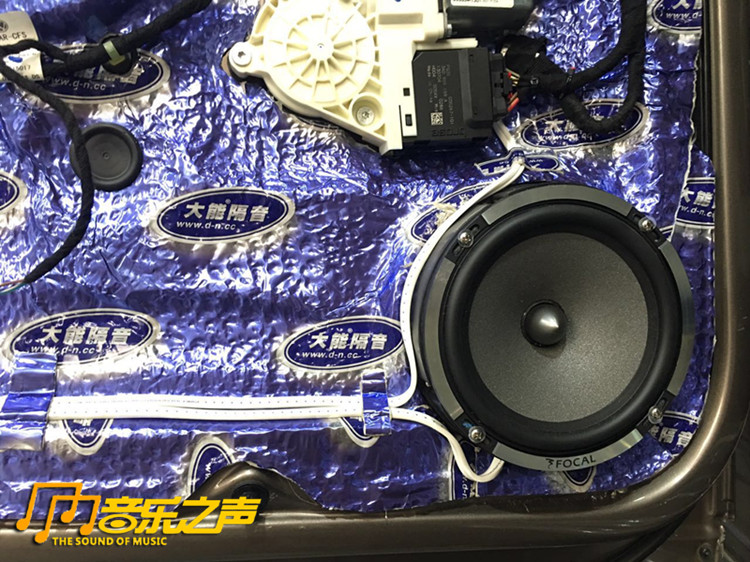 后門法國勁浪套裝兩分頻喇叭原車位無損安裝,配上音樂之聲嚴(yán)謹(jǐn)走線工藝!