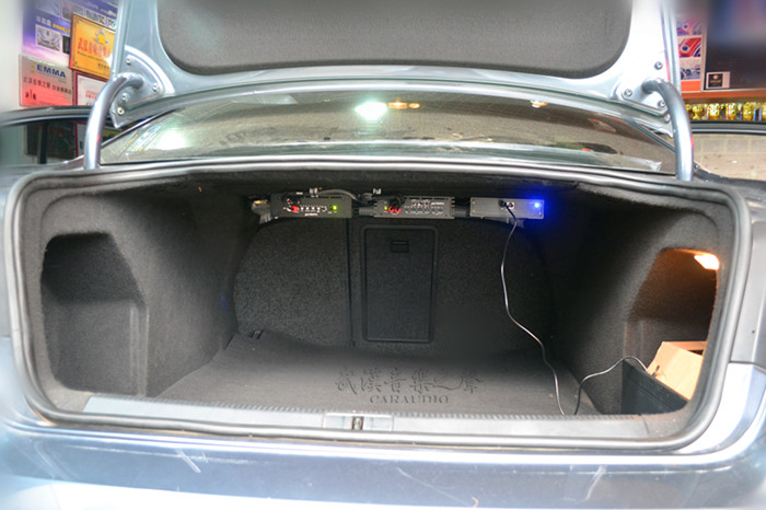德國艾索特單路和四路功放與魔立方解碼器DSP6+走線規(guī)范,后備箱吊裝效果,精致安裝,不占空間。