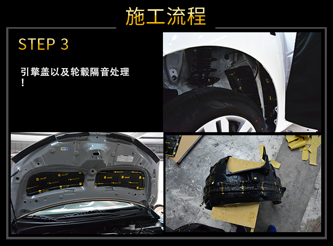 ?汽車(chē)在行駛時(shí),發(fā)動(dòng)機(jī)噪音、路躁胎噪等入侵車(chē)內(nèi),所以對(duì)引擎蓋以及輪轂這些地方,進(jìn)行了隔音處理,切斷噪音的傳播路徑!