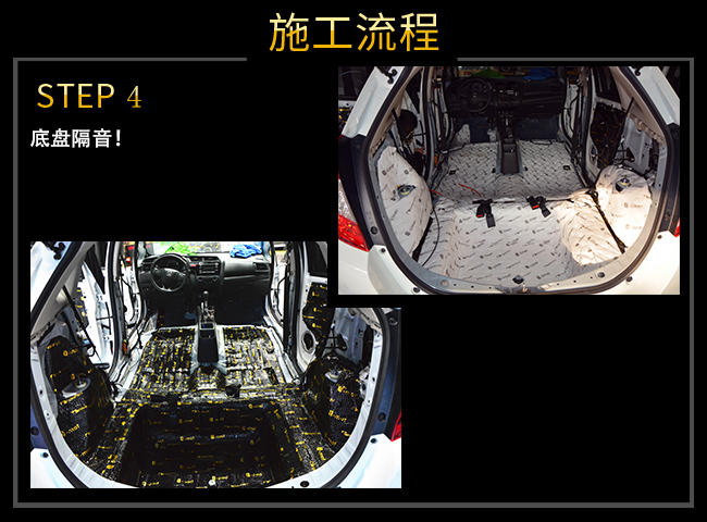 ?底盤(pán)是低頻共振的重災(zāi)區(qū),原車(chē)底盤(pán)和尾箱隔音措施非常欠缺,因此對(duì)汽車(chē)的底盤(pán)和尾箱做了雙層隔音處理,從而降低了底盤(pán)和尾箱產(chǎn)生的大部分噪聲。