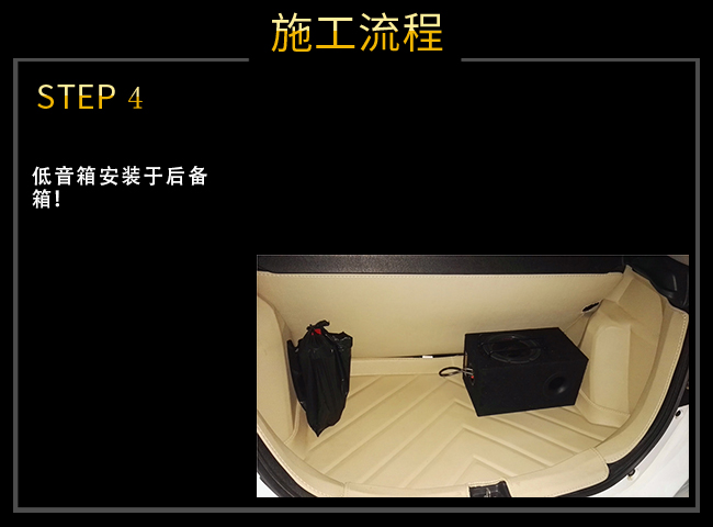 ?低音箱安裝于后備箱,方面靈活,大大節(jié)省了車內(nèi)空間!