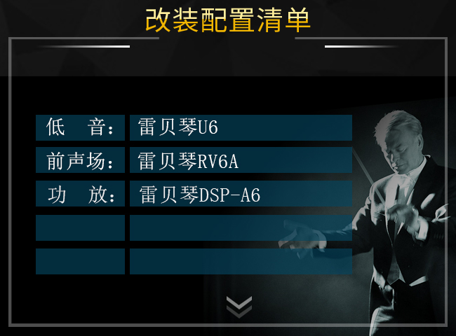 前聲場(chǎng)安裝雷貝琴RV6A,是一款最為經(jīng)典的強(qiáng)調(diào)人聲的喇叭,人聲甜美而富有情感,中頻表現(xiàn)自然流暢、低頻彈性好、層次佳、有質(zhì)感、表現(xiàn)爵士樂(lè)是它最大特點(diǎn)!