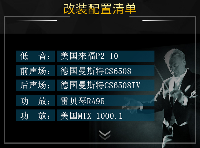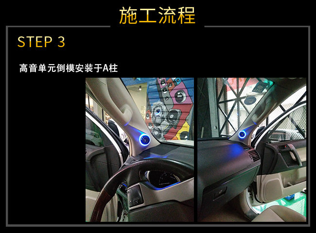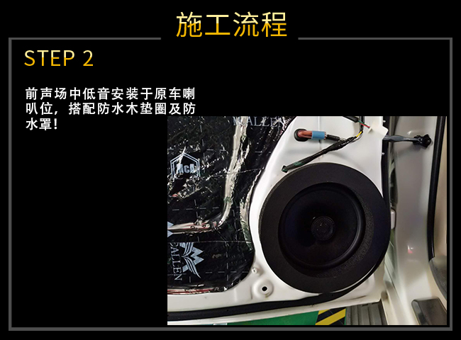 前聲場(chǎng)喇叭曼斯特中低音安裝于原車?yán)任灰云渚傻刂圃?,完美的音質(zhì),飽滿的音色,超高效率來(lái)呈現(xiàn)給車主。