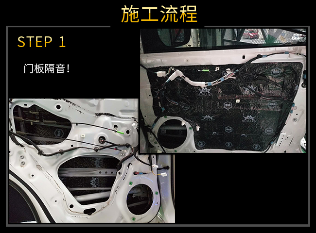 拆開車門,將里面處理干凈后,內(nèi)層隔音處理,從而有效的加強(qiáng)門板厚度并且抑制共振,達(dá)到降低噪音的效果,外層隔音讓外層鐵皮振動(dòng)得到最大的抑制,并且能夠在門板中形成一個(gè)密閉的箱體,大大的優(yōu)化了音響的效果!