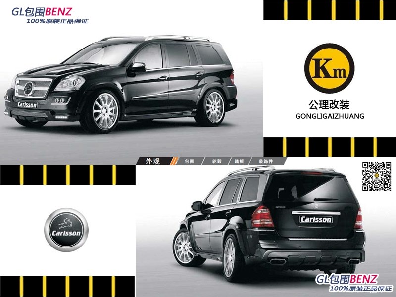 上海KM改裝俱樂(lè)部擁有歐洲MANSORY、HAMANN、LUMMA、KAHN等三十多個(gè)專門(mén)針對(duì)保時(shí)捷、路虎、奔馳、寶馬、奧迪、進(jìn)口大眾六大汽車(chē)品牌的改裝產(chǎn)品,并擁有專業(yè)的設(shè)計(jì)團(tuán)隊(duì)為高端車(chē)主提供個(gè)性化定制服務(wù)。KM將成為全國(guó)范圍內(nèi)產(chǎn)品最廣、單位面積最大、設(shè)施最齊全、檔次最高的國(guó)際超級(jí)豪車(chē)改裝旗艦店。此產(chǎn)品:Benz奔馳GL全進(jìn)口原裝包圍Carlsson品牌。