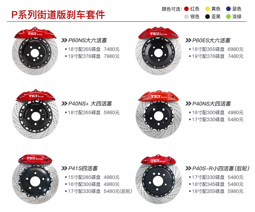 P系列街道版性能制動剎車套件。主要是適合日常街道激烈駕駛,跑山,制動腳感靈敏,激進,擁有卓越的制動和散熱性能,在連續(xù)制動下表現(xiàn)更加穩(wěn)定??ㄣQ是輕量化鏤空設(shè)計的鍛造卡鉗,采用了輕量化高強度鍛制鋁合金制成。其酷炫的外觀和卓越性能,廣深改裝愛好者的喜愛。