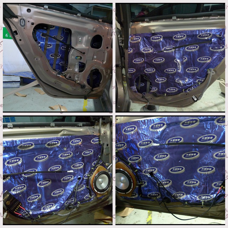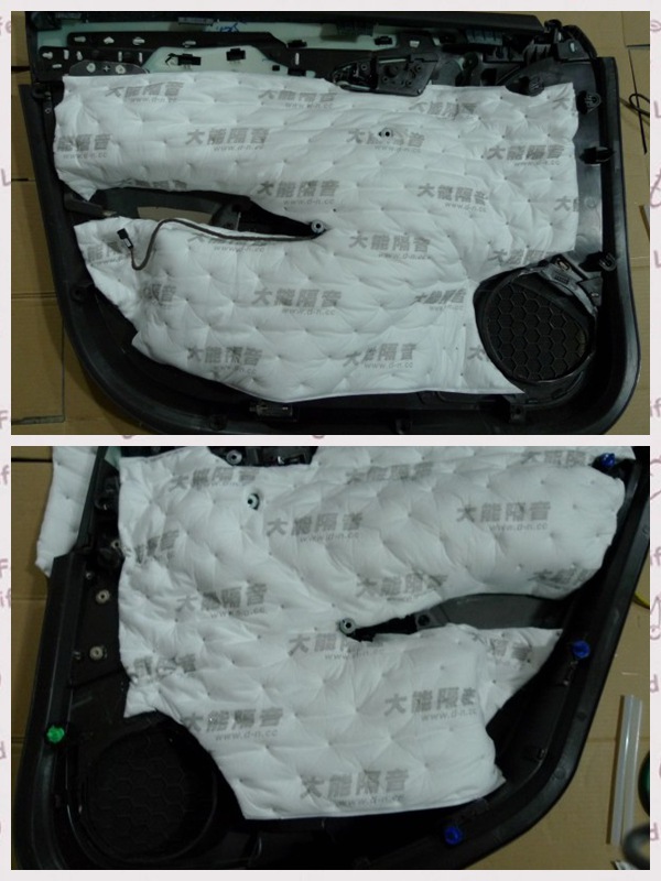 雙層減震之后,我們?cè)趦?nèi)飾板上再貼上超級(jí)溫莎做吸音處理。