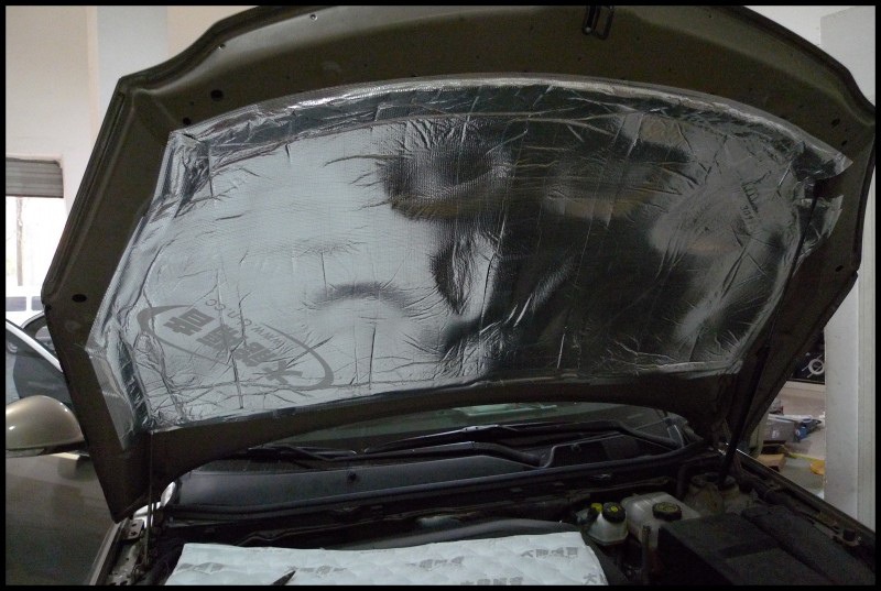 引擎蓋上我們使用引擎蓋隔熱膜做吸音、隔熱處理。一方面吸收發(fā)動(dòng)機(jī)噪音,使車(chē)內(nèi)發(fā)動(dòng)機(jī)噪聲更細(xì)膩輕柔;另一方面,大量阻隔發(fā)動(dòng)機(jī)倉(cāng)熱量向引擎蓋傳導(dǎo),防止引擎蓋漆面因長(zhǎng)期高溫烘烤而掉色、失去光澤。
