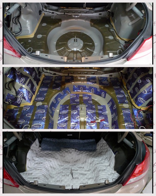 車(chē)地板的隔音和后備箱一樣。但若底盤(pán)低頻噪音明顯,我們則建議使用藍(lán)金剛搭配低頻王。