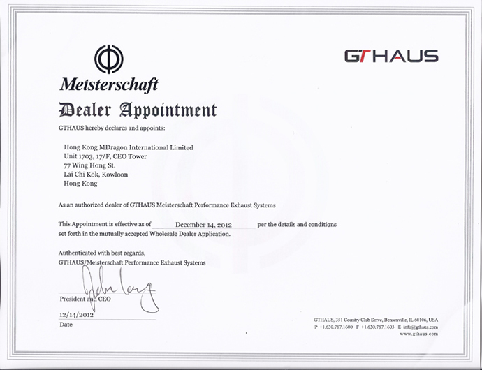 Meisterschaft正式授權(quán)香港曼龍國際有限公司中國華南及香港地區(qū)總代理。