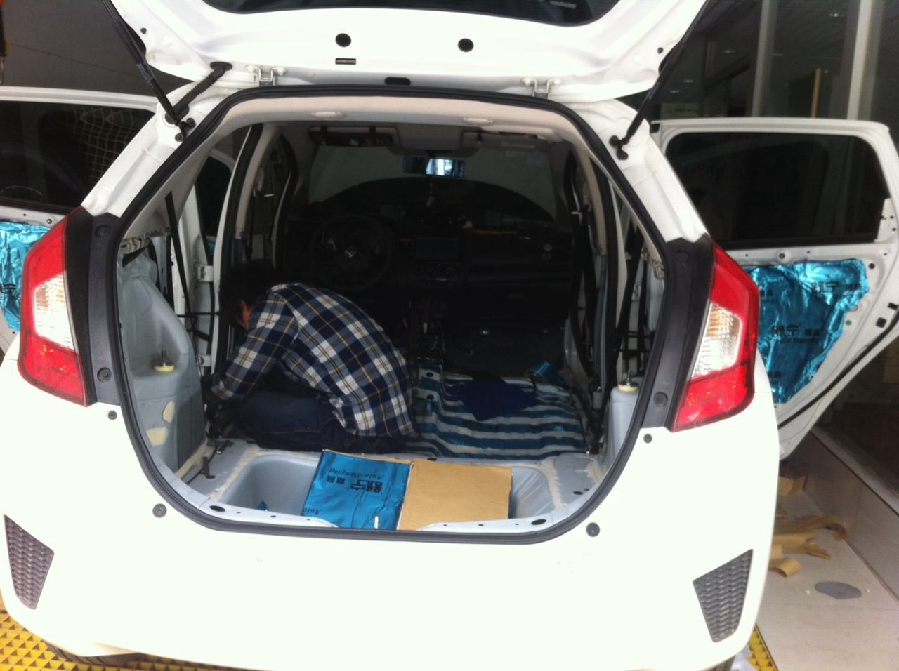 匯聲汽車音響改裝聯(lián)盟-新飛度 安博士-舒寧全車隔音工程