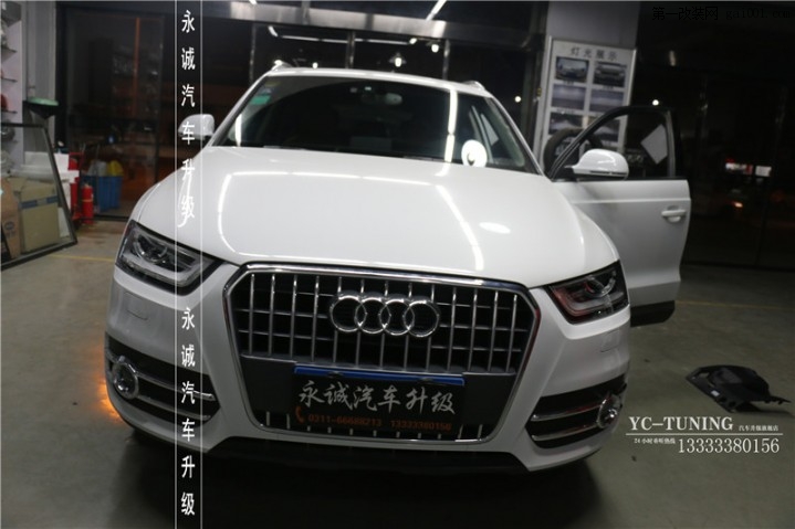 石家莊奧迪Q3升級高配車燈,LED尾燈 改燈配置:原廠高配氙氣大燈總成 + 歐司朗5500K氙氣燈 + 歐司朗安定器 + LED尾燈