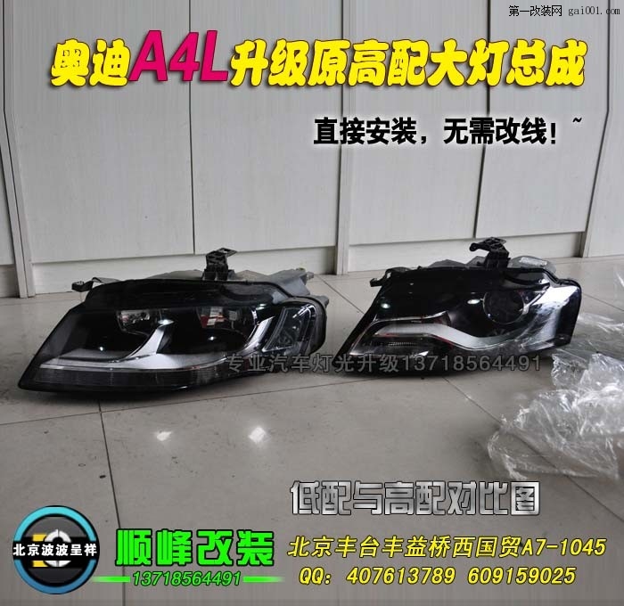 奧迪A4L升級(jí)原廠淚眼大燈總成 北京波波專業(yè)燈光升級(jí) 無需改線 直接對插 無破壞的原裝位改裝即可擁有高配車氙氣燈的外觀和高亮燈光電話:13718564491QQ:393226128 ...