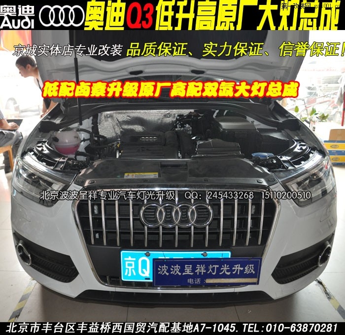 奧迪Q3改海拉3雙光透鏡氙氣燈 北京波波實(shí)體店改裝 微信電話:15110200510 QQ:245433268